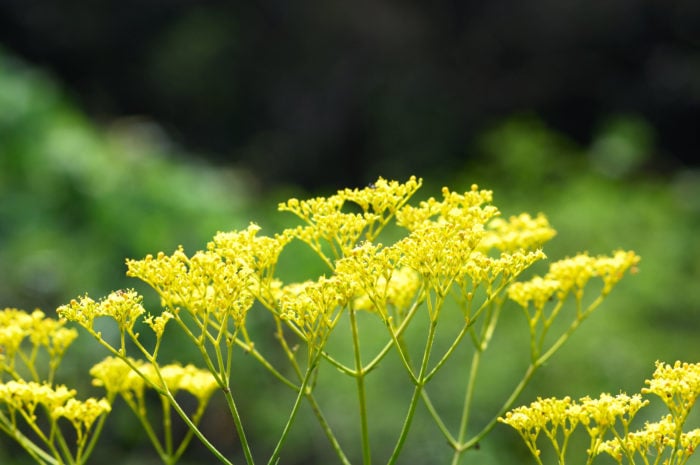 秋の七草のひとつ「オミナエシ(女郎花)/「女郎」は奈良・平安時代には「女性」の意味で、近代の意味「女郎=遊女」とは違っていた。」黄色い小花を房に咲かせる可憐な姿から「女性らしい花」とされました。「オトコエシ」は花粒が白く大きく対比されます。一説には「エシ」は「圧し(へし)」であり、花の姿の美しさは美女を圧倒するという意味だとする説があるようです。「秋の七草は女性的なイメージが強い」という説があり、古くは女性の美徳を象徴する花と見なされました。また、別名は黄色の粒々を粟粒に例えて女飯、女餌などと、さらには独特のにおいから敗醤(はいしょう)とも言われます。